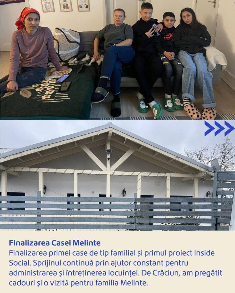 Este primul nostru proiect dar și prima casă pentru Corina și pentru cei 7 copii ai săi. În acest nou cămin, familia Melinte are toate facilitățile necesare unui trai decent: căldură, apă caldă, bucătărie funcțională și spațiu pentru toți copiii.